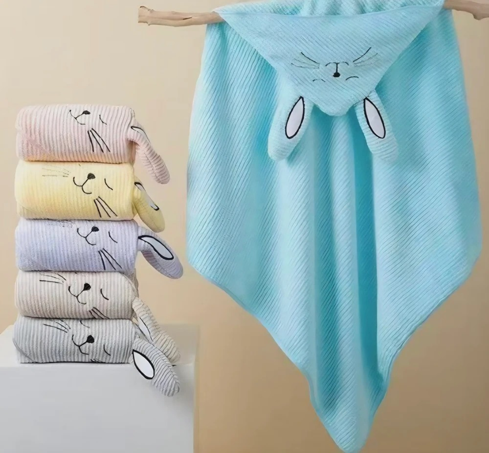 TOALLON CON CAPUCHA CONEJO RAYADO