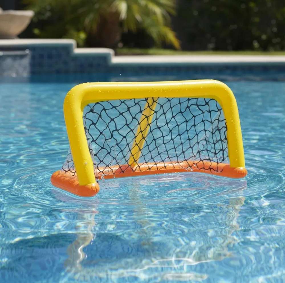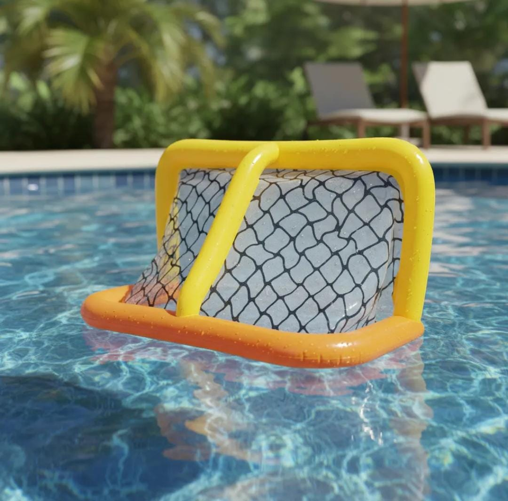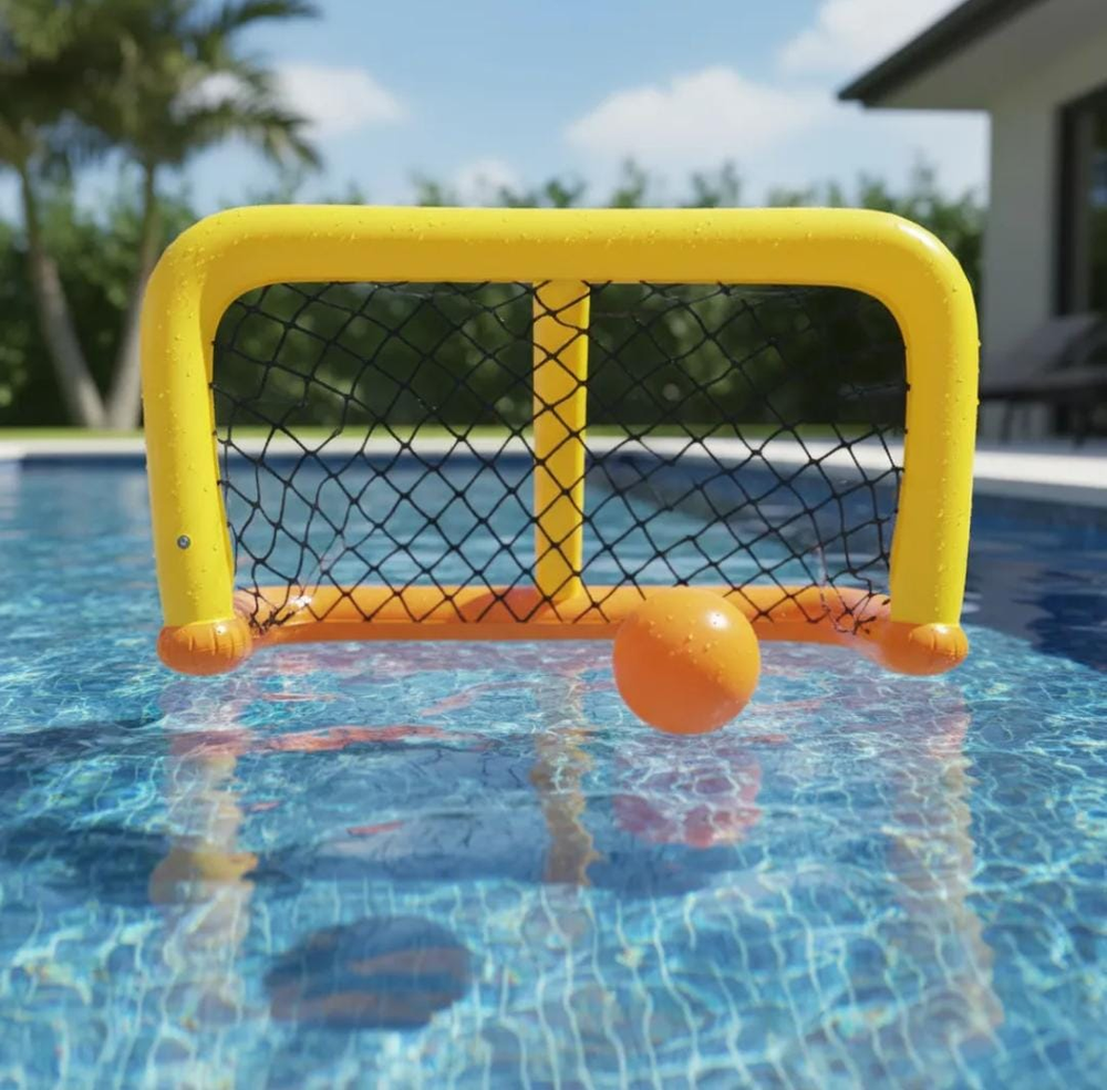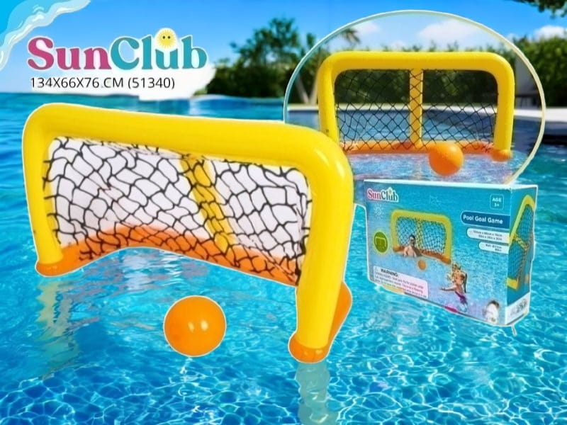 Arco de futbol Sun Club con red y pelota, ideal para piletas en este verano. Incluye además un parche de reparación.