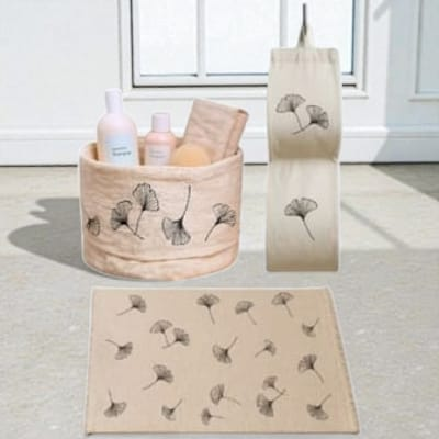SET BAÑO X 3 ALFOMBRA+CANASTA+PORTA ROLLO