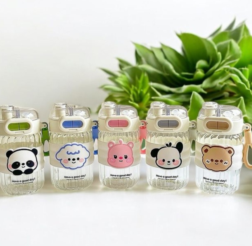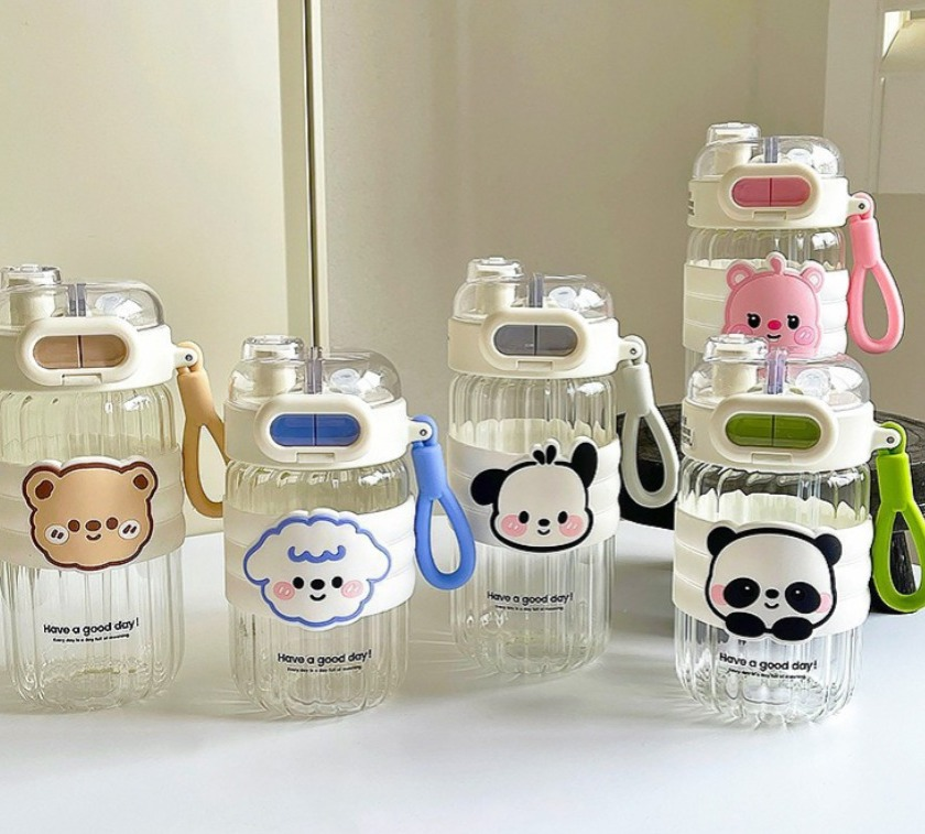 BOTELLA DE VIDRIO CON DOBLE PICO + SORBETE GOOD DAY 600ML