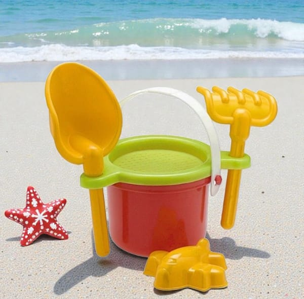 SET BALDE DE PLAYA + RASTRILLO +COLADOR+1 MOLDE ARENA