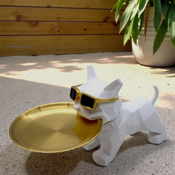 PERRO CON BANDEJA DECO PORTA LLAVE-BIJOU
