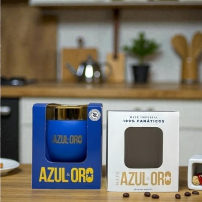 MATE IMPERIAL CON PACKAGING DE REGALO AZUL Y ORO