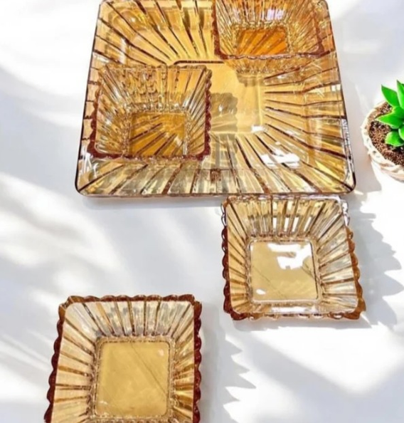 Perfecto para aperitivos y salsas. El set de un plato y cuatro cuencos pequeños es ideal para cenas elegantes, ocasiones especiales o para el disfrute diario. Color: dorado