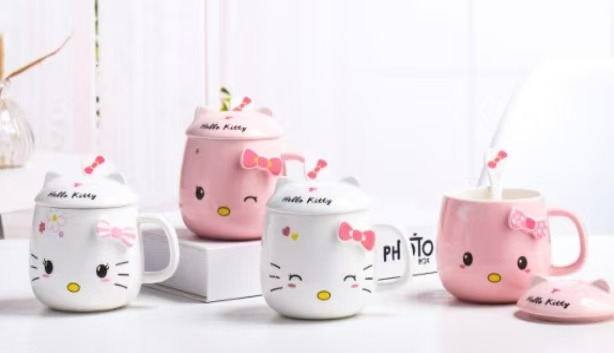 TAZA CERAMICA KITTY CON TAPA + CUCHARA