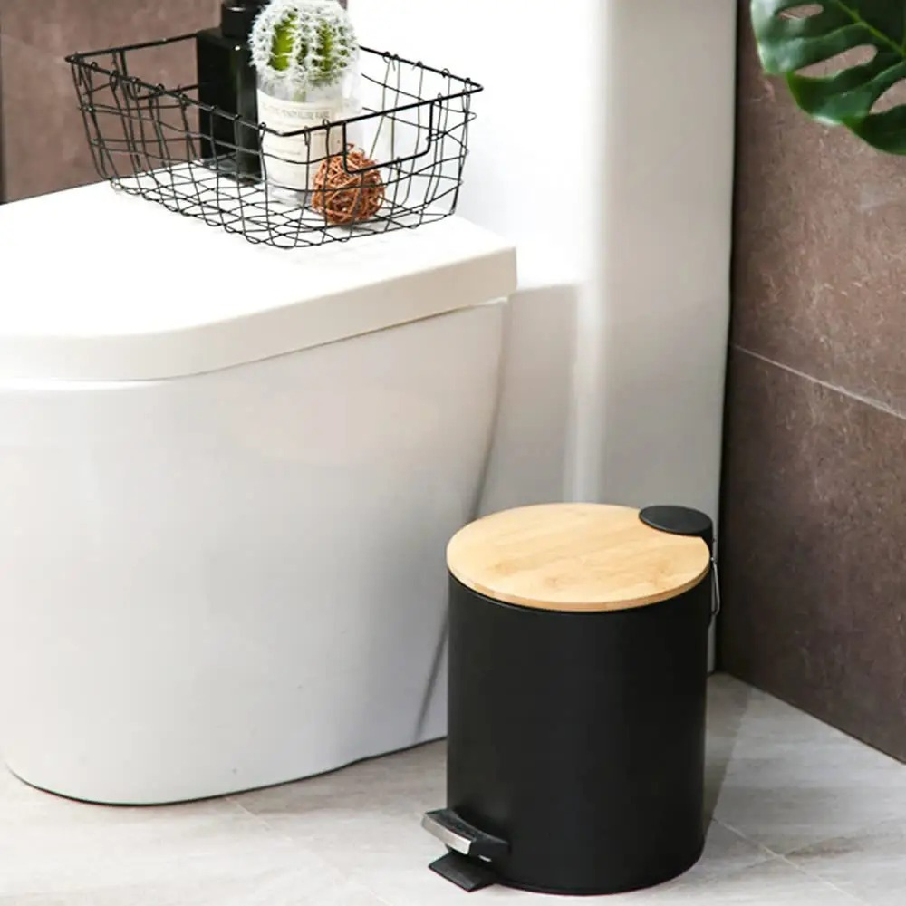CESTO DE BASURA NEGRO TAPA BAMBU 3 LITROS