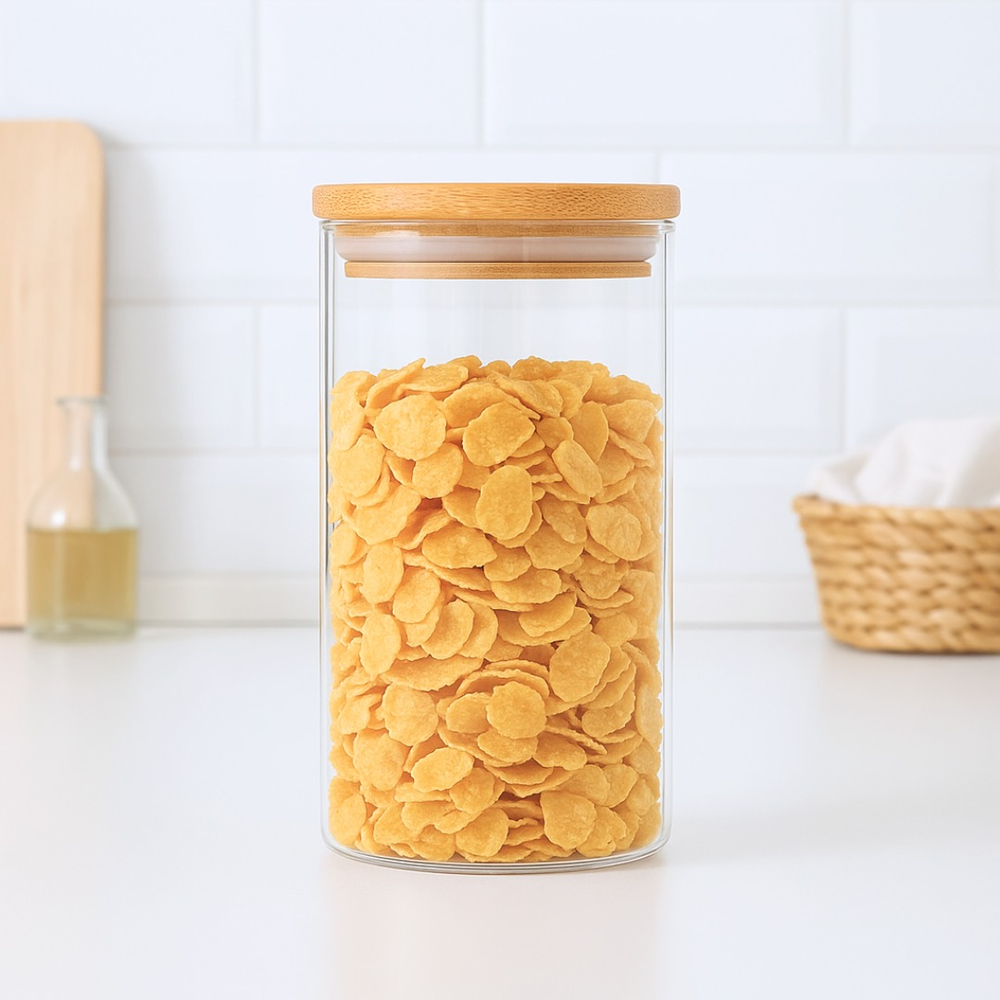 FRASCO DE VIDRIO TAPA BAMBU MEDIANO 1068 ML