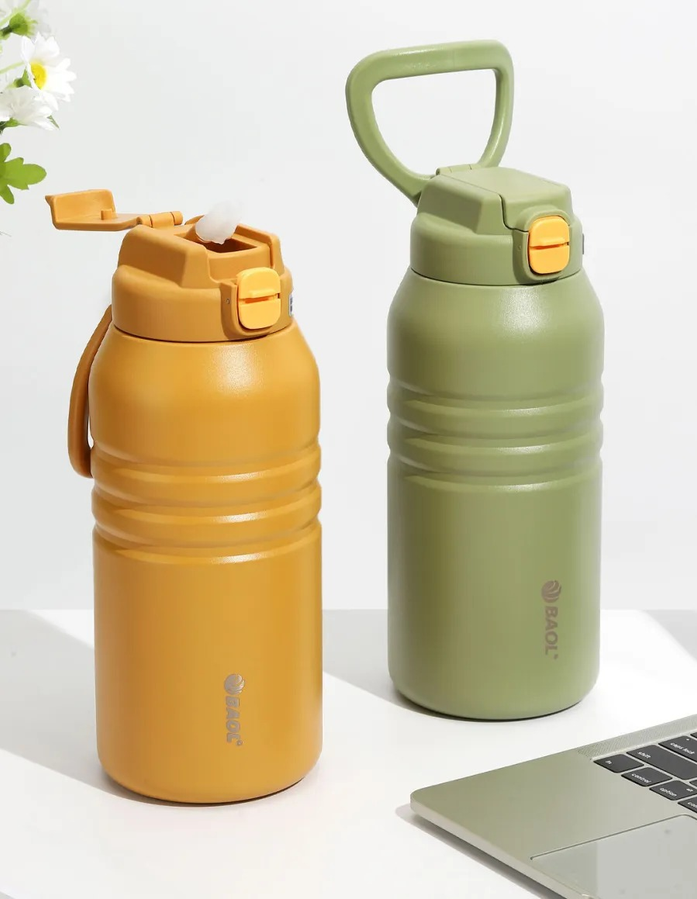 Esta botella térmica con base de acero inoxidable y tapa con apertura flip-top es ideal para quienes llevan un estilo de vida activo. Su diseño robusto y moderno la hace perfecta para entrenamientos, paseos o el día a día.