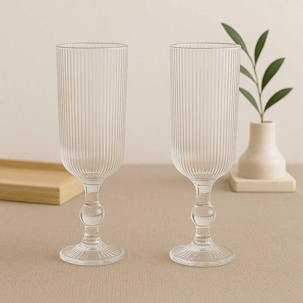 SET X 6 COPAS DE CHAMPAGNE ALTA RAYADA TRANSPARENTE