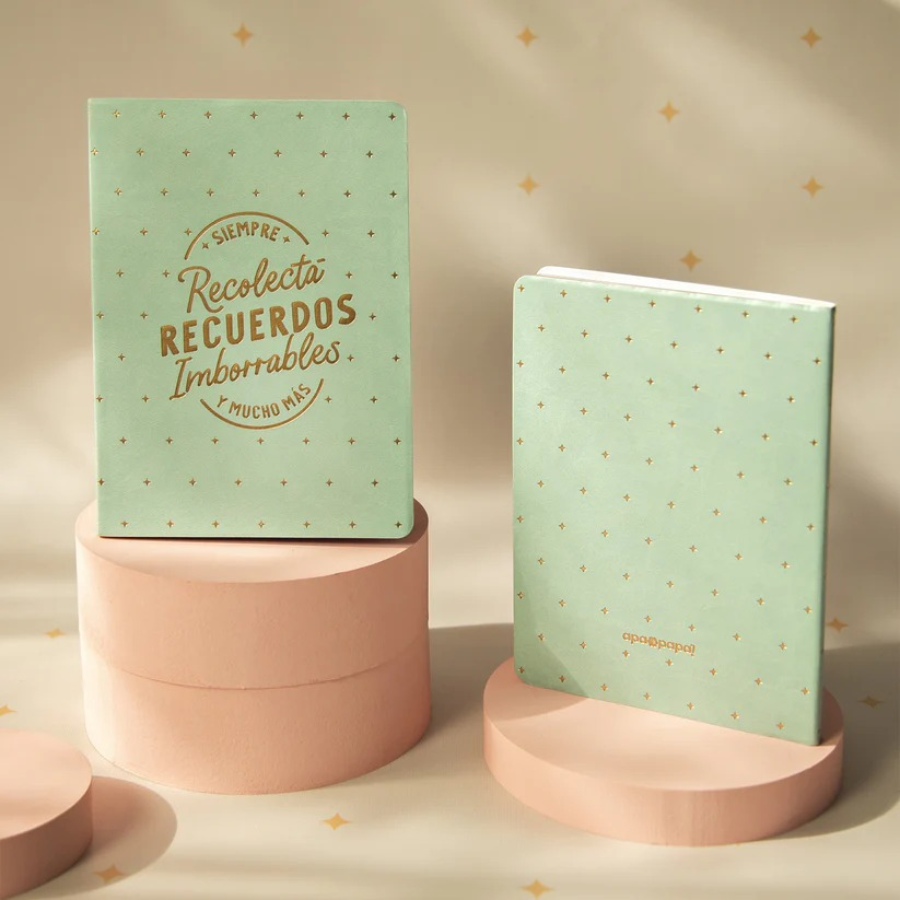 Amamos esta nueva colección de cuadernos de cuero ecológico! Delicados, elegantes, hermosos! Vienen con puntas redondeadas y tapa semi rígida. Rallados en su interior, con sector para titulares y fecha. Y una sorpresa…con bordes metalizados a tono del diseño!! Un detalle super especial.