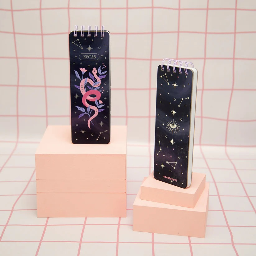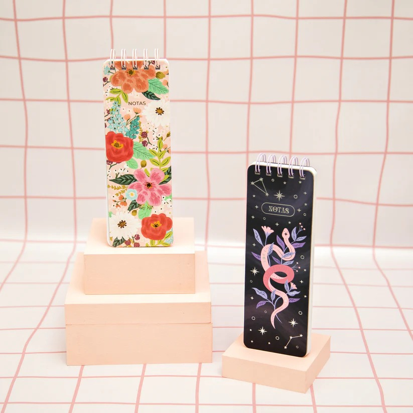 Son Hermosos, son únicos, son rallados, tienen terminación mate Soft Touch y Hot stamping. Con anillados a tonos de los diseños, puntas redondeadas y son tapa DURA! Impresión full color en retiraciones