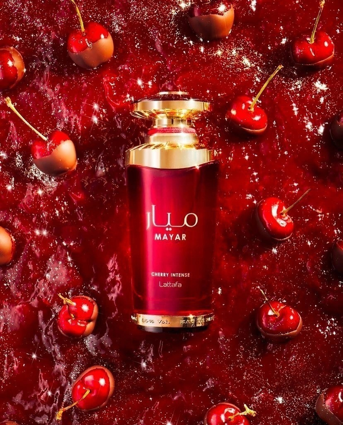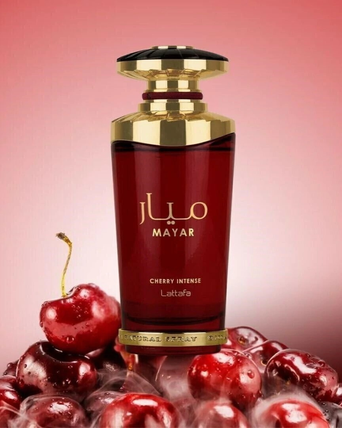 Mayar Cherry Intense es una fragancia de la familia Oriental Vainilla, diseñada para hombres y mujeres. Lanzada en 2024, esta fragancia combina la dulzura frutal de la cereza y la fresa con toques cálidos y envolventes de vainilla y ámbar. Su carácter gourmand y sofisticado la convierte en una opción ideal para quienes buscan una fragancia dulce y elegante. Notas de Salida: fresa, bergamota Notas de Corazón: Cherry Jam, cacao Notas de Fondo: ámbar, pachulí, vainilla