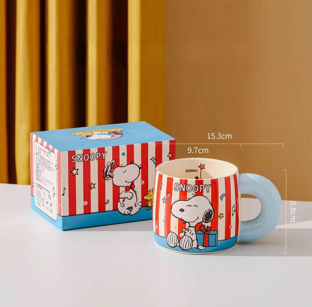 TAZA CERAMICA SNOOPY RAYAS ROJAS