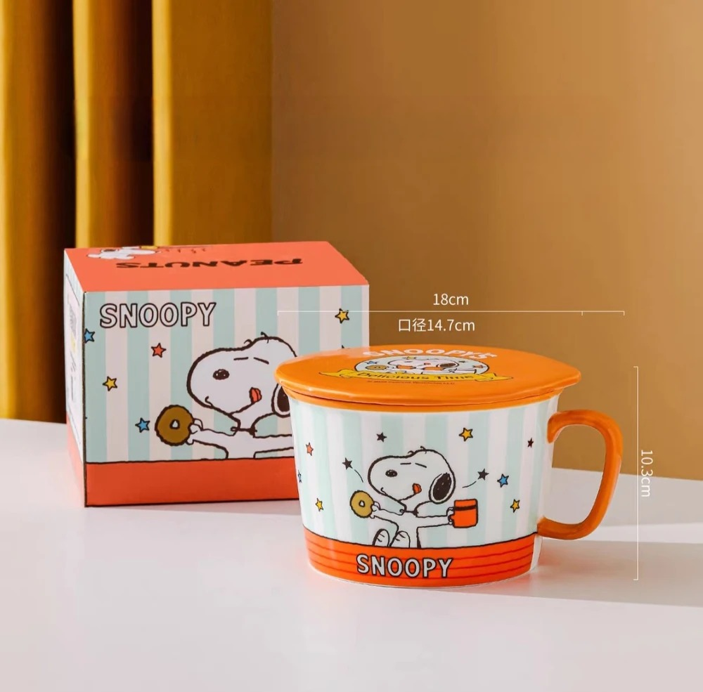 TAZON XL CON TAPA CERAMICA SNOOPY RAYAS CELESTES