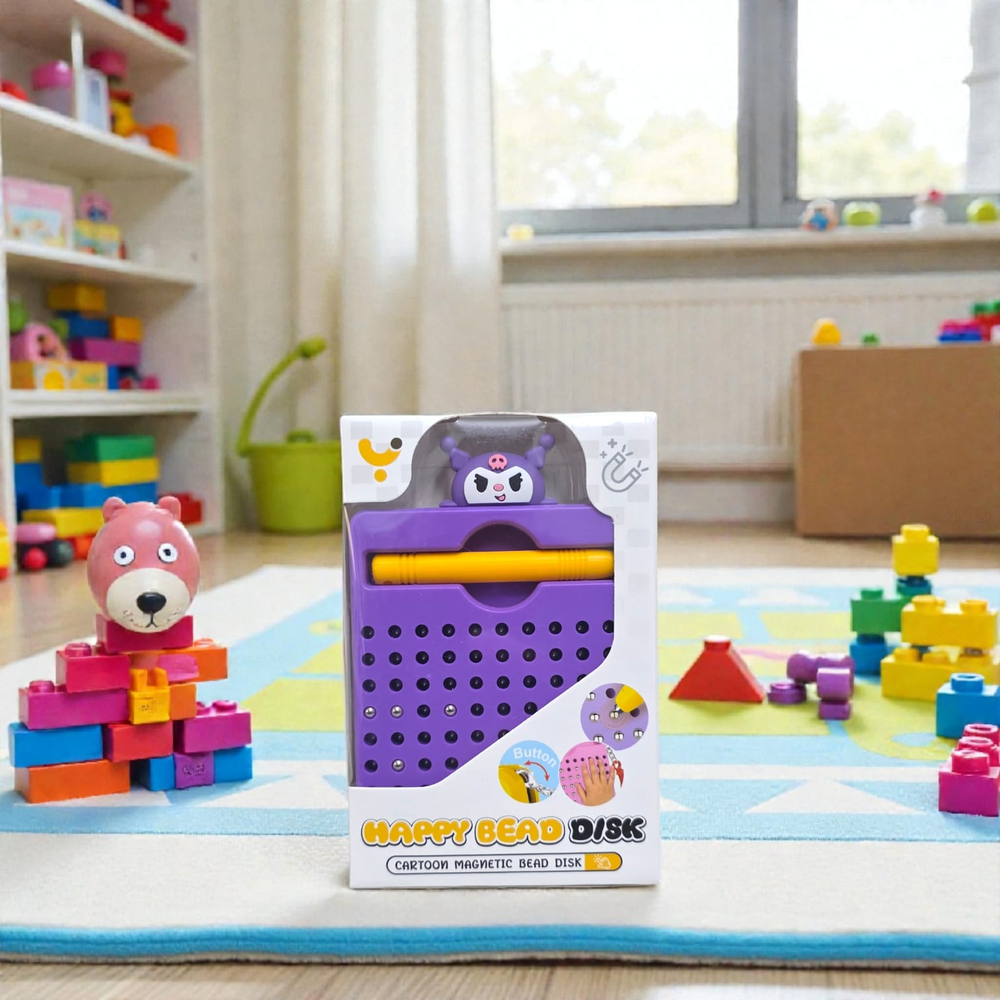 TABLERO CON IMANES Y BOLÍGRAFO IMANTADO PERMITE DIBUJAR DESLIZANDO EL LÁPIZ IMANTADO POR EL TABLERO, COMO SI DE UNA PIZARRA SE TRATASE. PARA BORRAR, BASTA CON COLOCAR EL LÁPIZ EN POSICIÓN HORIZONTAL SOBRE EL TABLERO Y DESLIZARLO, HACIENDO PRESIÓN SOBRE LAS BOLITAS. LA PIZARRA MAGNÉTICA, ESTIMULA LA IMAGINACIÓN Y CREATIVIDAD DE LOS NIÑOS, PERMITIÉNDOLES CREAR CUALQUIER BOCETO O DIBUJO EN 2D. ADEMÁS, DESARROLLA EL ÁREA VISO-ESPACIAL Y LA AGUDEZA VISUAL, Y PERMITE PRACTICAR LA MOTRICIDAD FINA, MEJORANDO EL SENTIDO DEL TRAZO DE LA MANO A LA HORA DE DIBUJAR Y ESCRIBIR. LAS ACTIVIDADES QUE SE PUEDEN PRACTICAR SON MÚLTIPLES: DIBUJO, ESCRITURA, MATEMÁTICAS, CONTEO, FORMACIÓN DE PATRONES... LOS NIÑOS PUEDEN ADENTRARSE EN EL CONOCIMIENTO DE LAS FORMAS Y TRAZOS, DE LA ESCRITURA Y DE LOS NÚMEROS A LA VEZ QUE SE DIVIERTEN. ADEMÁS, DESARROLLARÁN HABILIDADES TAN IMPORTANTES COMO LA CONCENTRACIÓN, LA LÓGICA Y LA COMUNICACIÓN. EL TABLERO, CON REFUERZOS INTERIORES Y UN SISTEMA DE SEGURIDAD QUE IMPIDE QUE LAS BOLITAS SE SALGAN, ESTÁ FABRICADO CON PIEZAS LIBRES DE BPA, LÁTEX Y TOLUENO. SU DISEÑO LIVIANO OCUPA POCO ESPACIO, LO QUE HACE QUE SEA UN MATERIAL PERFECTO PARA TRANSPORTAR.