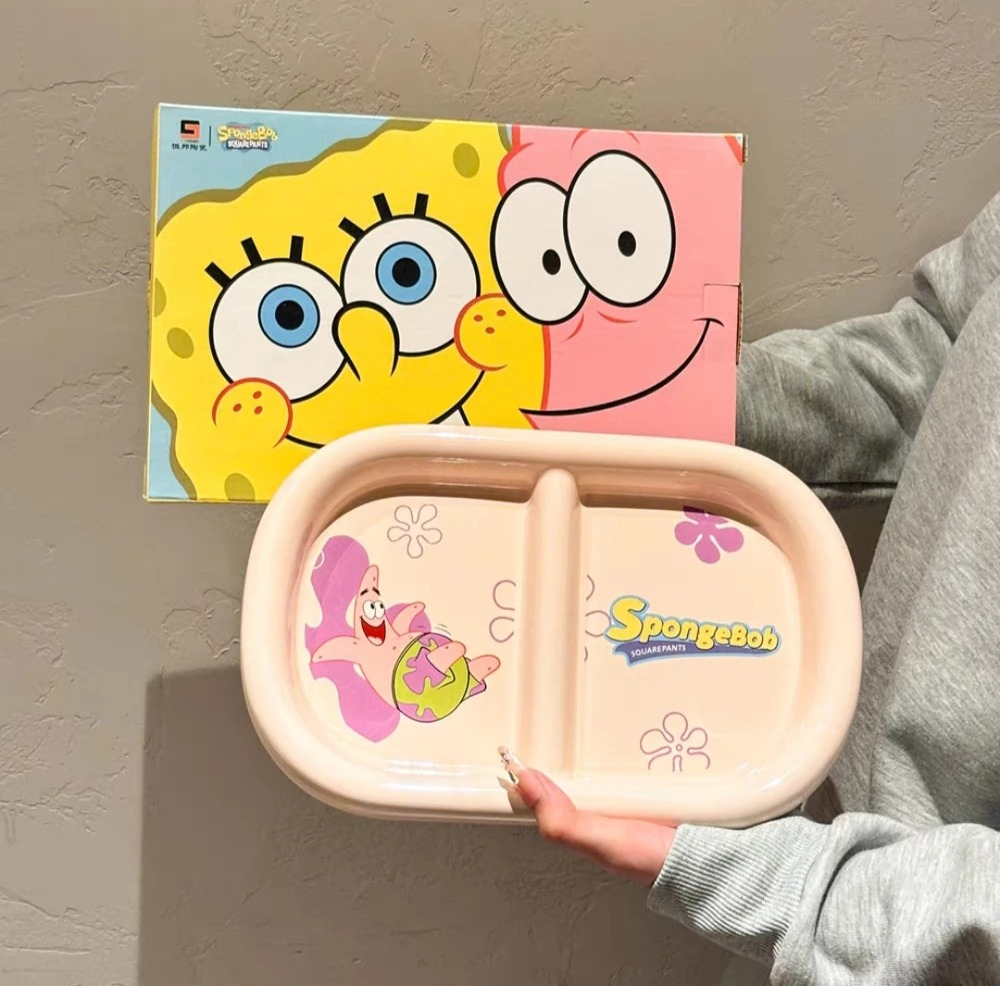 BANDEJA CERAMICA 28CM PATRICIO CON DIVISION A RAYAS CELESTES