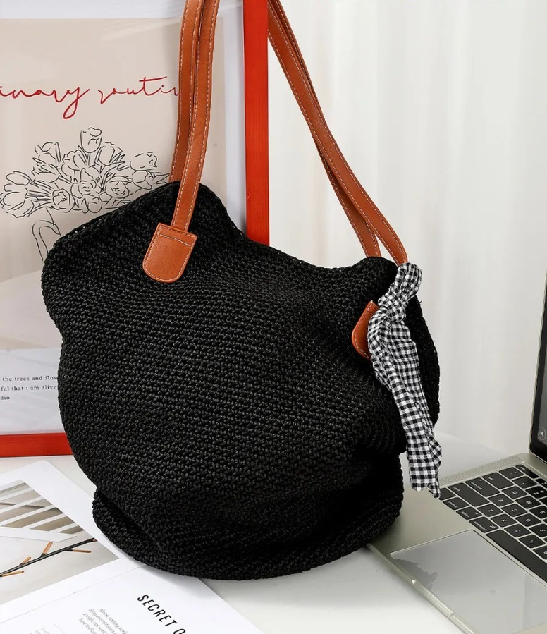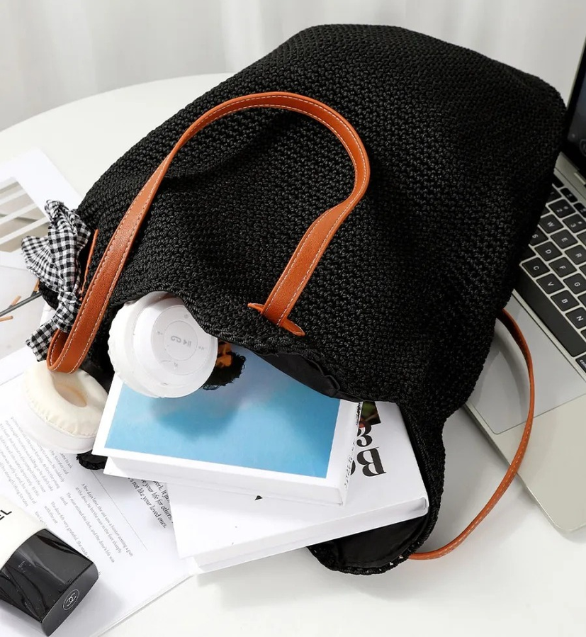 Bolso tejido, con diseño amplio y liviano que combina estilo natural y practicidad. Su material resistente lo hace ideal para el uso diario, salidas, paseos o compras.