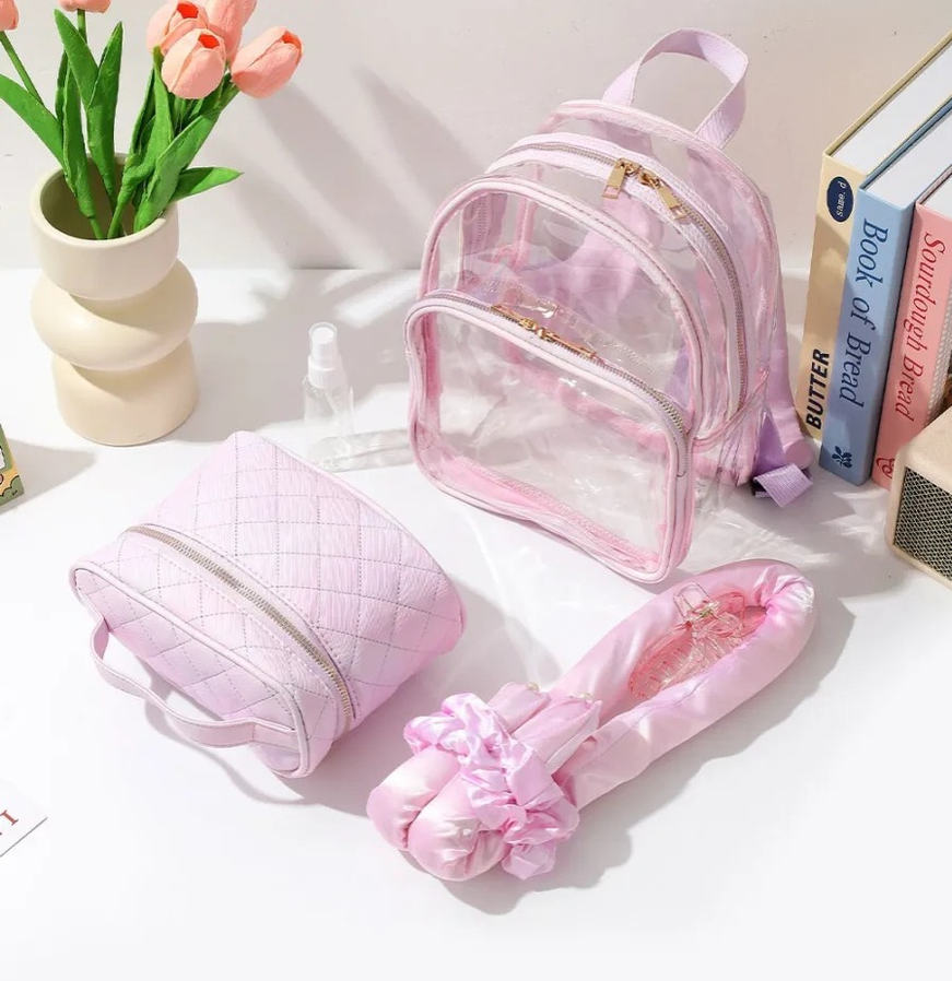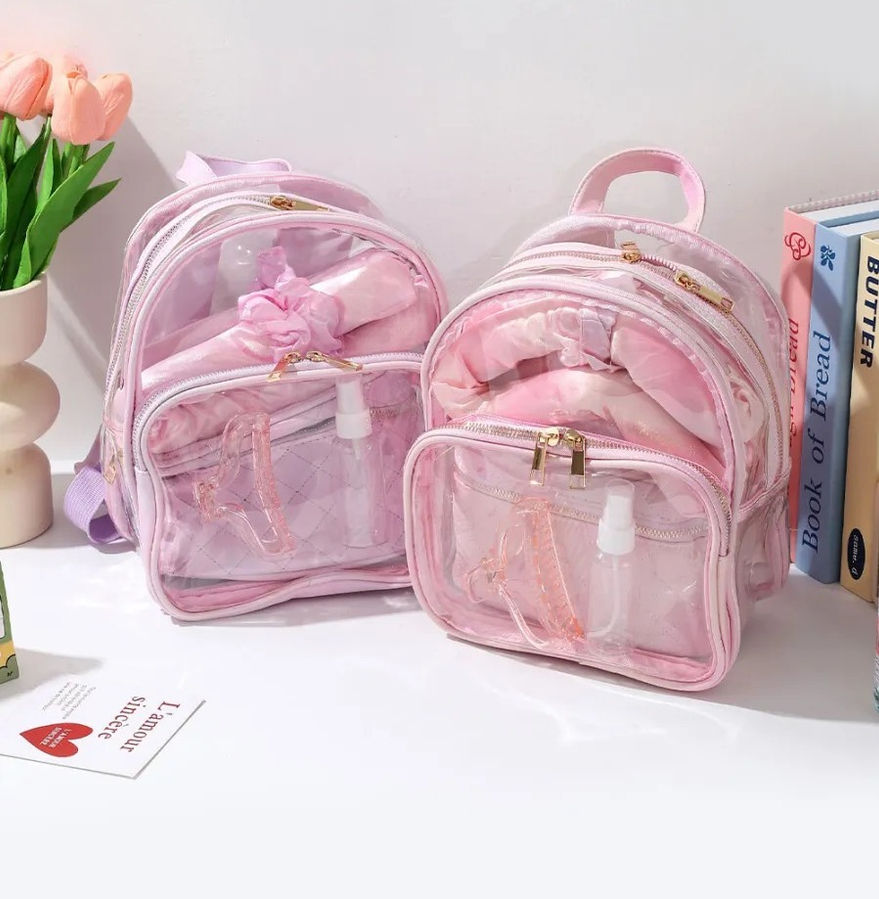 Set de belleza de 7 piezas, con diseño transparente tipo mochila que permite ver fácilmente el contenido en su interior. Cuenta con cierre suave y práctico, ideal para un uso cómodo y diario.Su diseño funcional combina estética y practicidad, perfecto para organizar accesorios personales y llevar todo de manera ordenada.