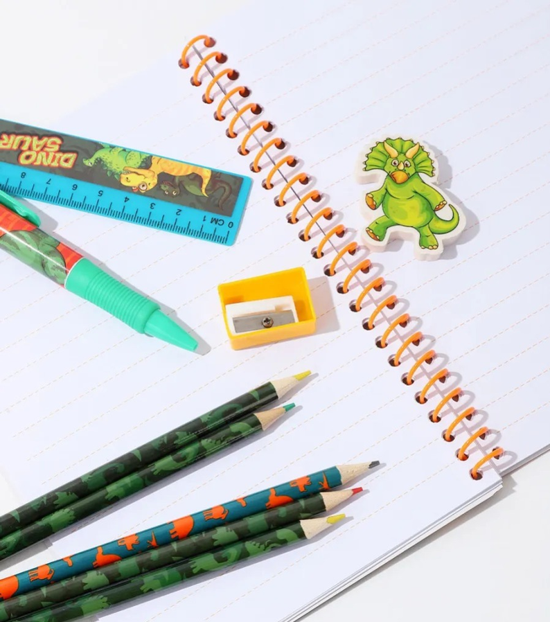 Set de librería con diseño colorido y práctico, ideal para uso diario en estudio o escuela. Todos los artículos vienen incluidos en un solo set, listo para usar y fácil de llevar.