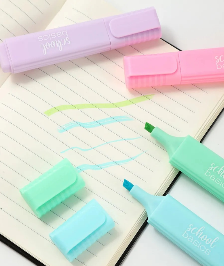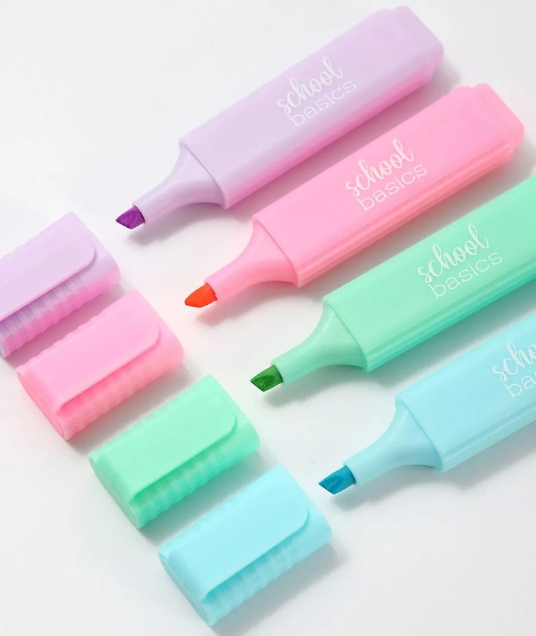 Set de 4 resaltadores en tonos pastel. Cada marcador tiene punta biselada, trazo uniforme y secado rápido. Ideal para apuntes, planificación o uso escolar.