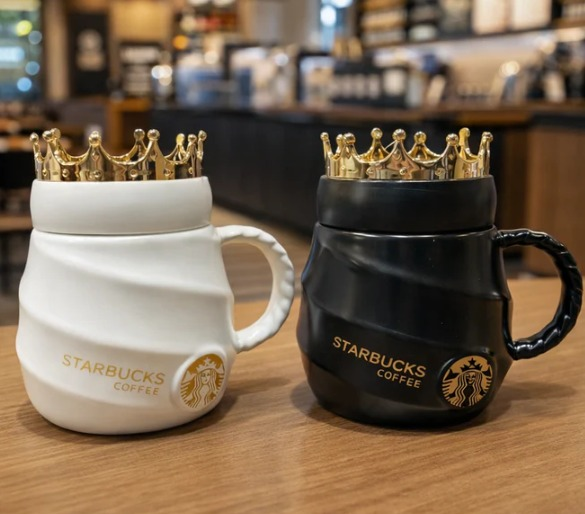 Taza decorativa con detalle distintivo en la tapa. Ideal para sumar estilo a tus momentos de café. Color: Blanco / negro
