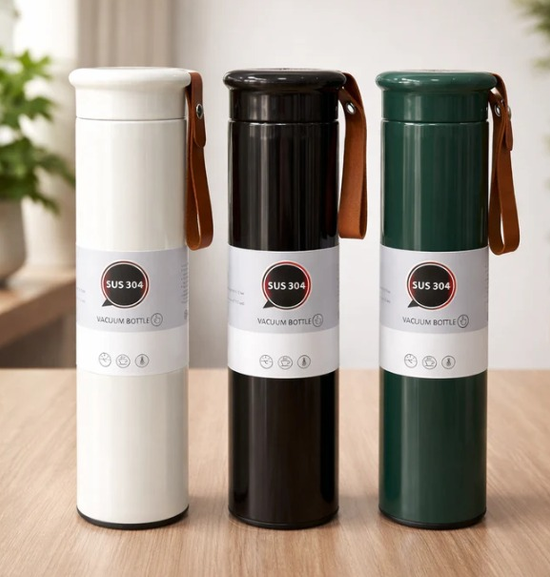 Diseñado para transportar fácilmente, incluye correa para llevar. Ideal para actividades diarias, trabajo o viajes. Colores: Blanco - Negro - Verde Medida 500ml