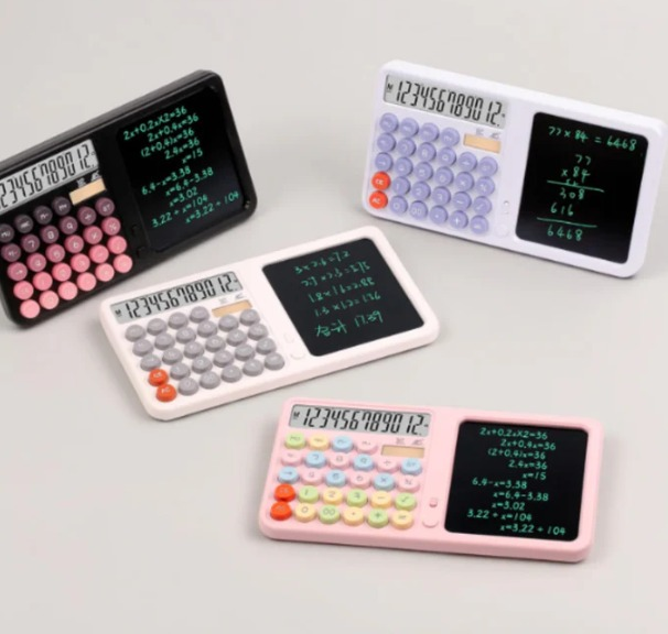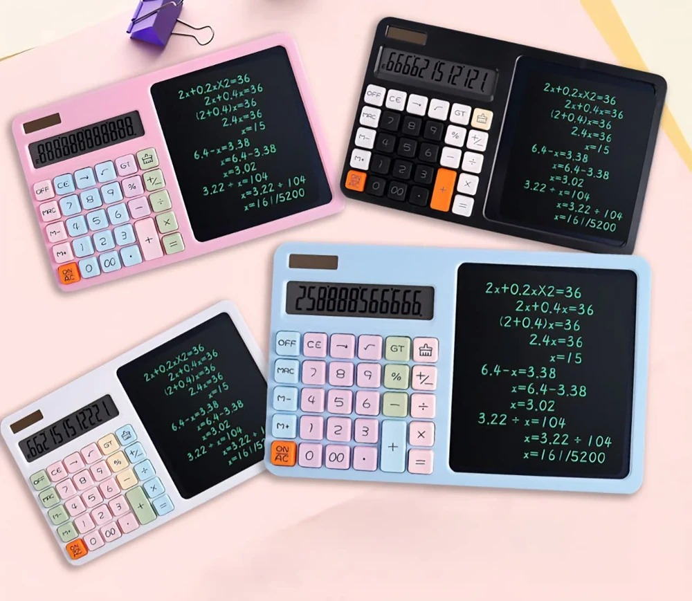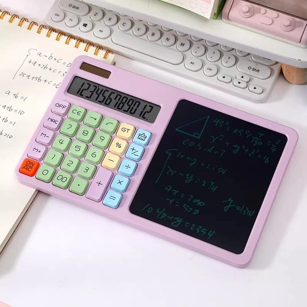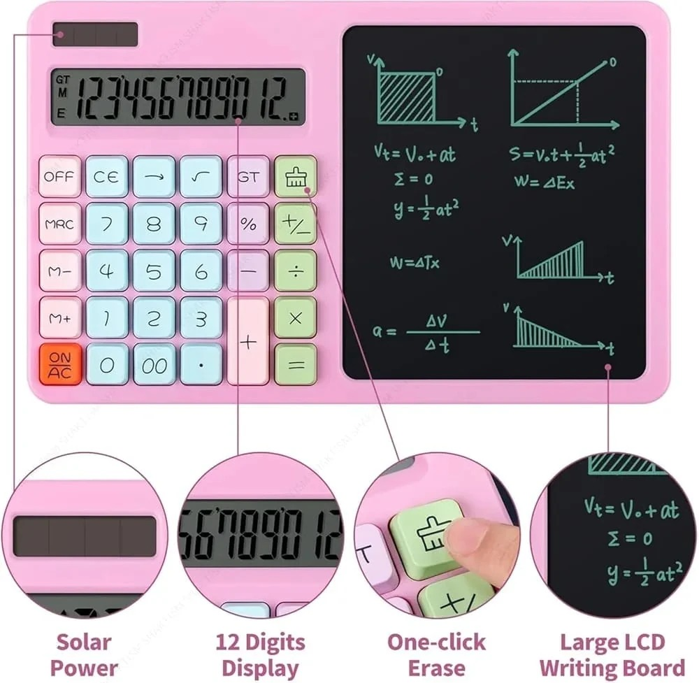 (Calculadoras Pasteles de 12 dígitos, cuenta con una pizarra borrable y un lapiz, ideal para uso escolar o de oficina. Para uso de debe utilizar 1 pila boton 3V).
