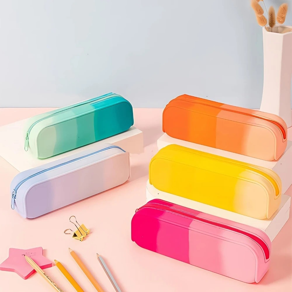 (Cuenta con un compartimento principal y posee un diseño degrade. Ideal para almacenar útiles, pinceles, maquillaje, cremas, entre otros).