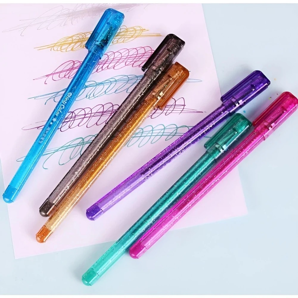(Cada set trae 6 biromes de glitter de distintos colores. Su punta es de 0,8mm. Agrega diferentes colores a tus dibujos, anotaciones y bocetos).