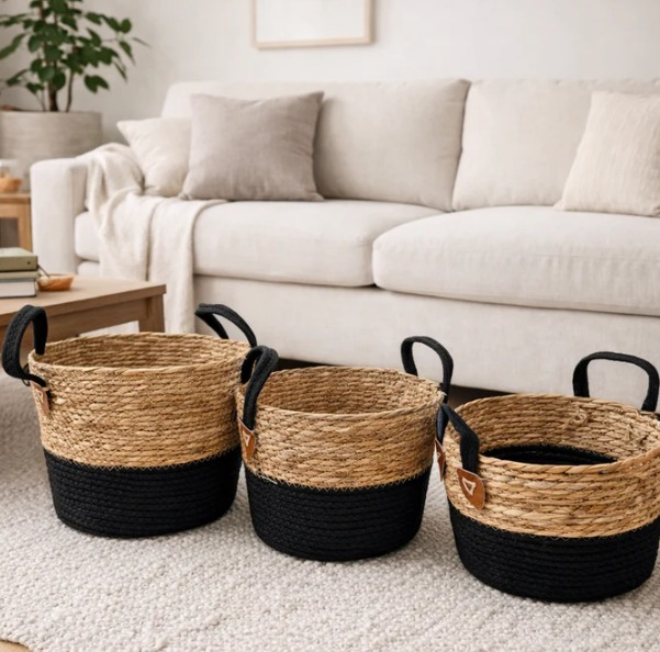 SET X 3 CANASTOS GRANDE MIMBRE Y CUERDA