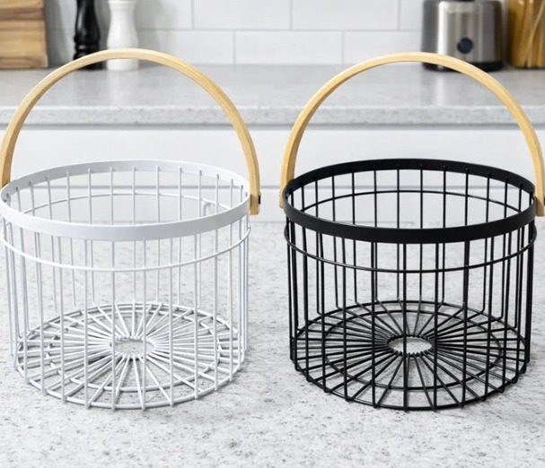 Canasto tipo Frutera /panera de 25,5 cm de diametro Colores:Blanco /negro . Práctico y funcional para el hogar.