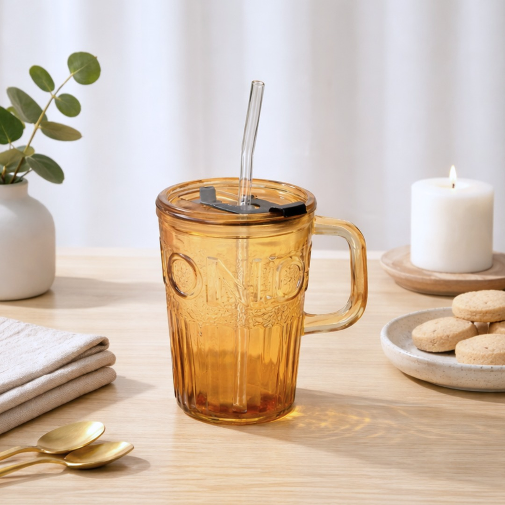 VASO DE VIDRIO CON SORBETE Y ASA 500ML