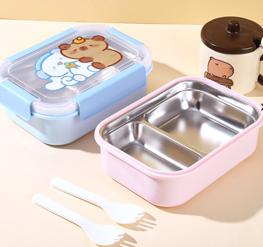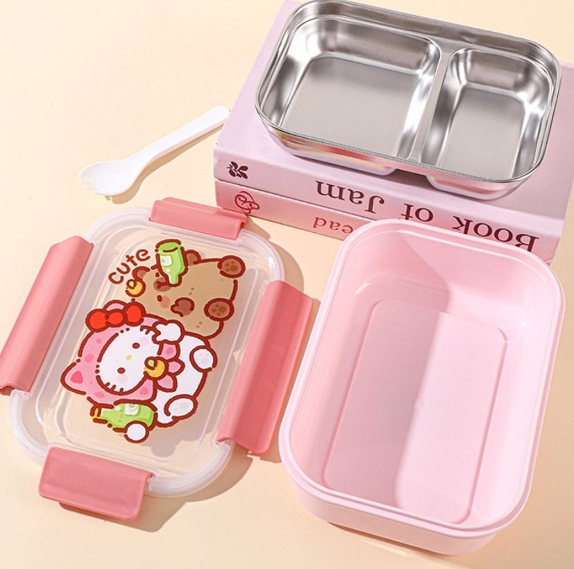 LUNCHERA ACERO DESMONTABLE C/DIVISIONES Y CUBIERTOS 900ML