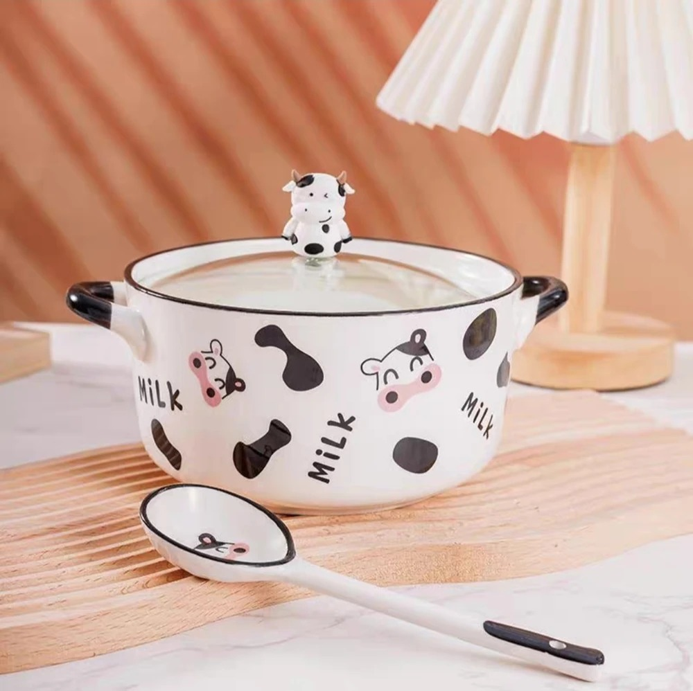 BOWL CON ASAS CERAMICA Y TAPA DE VIDRIO VAQUITA FELIZ