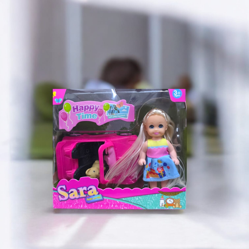 MUÑECA SARA CON AUTO Y MASCOTA