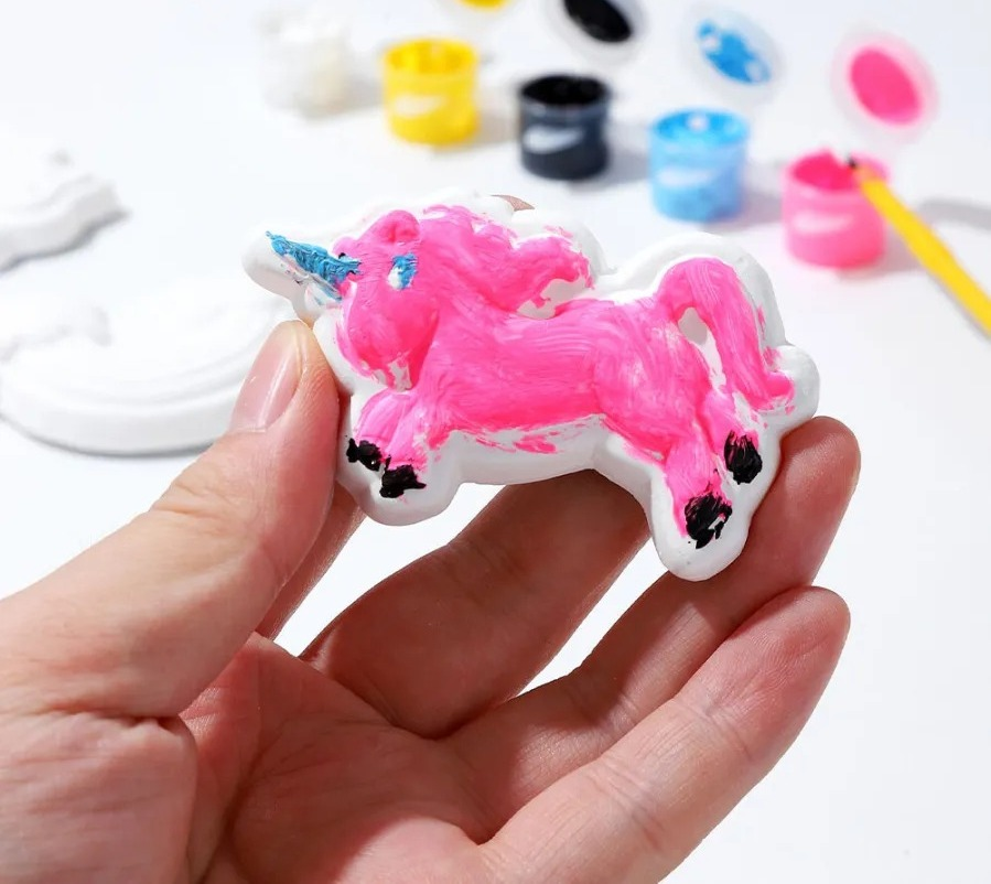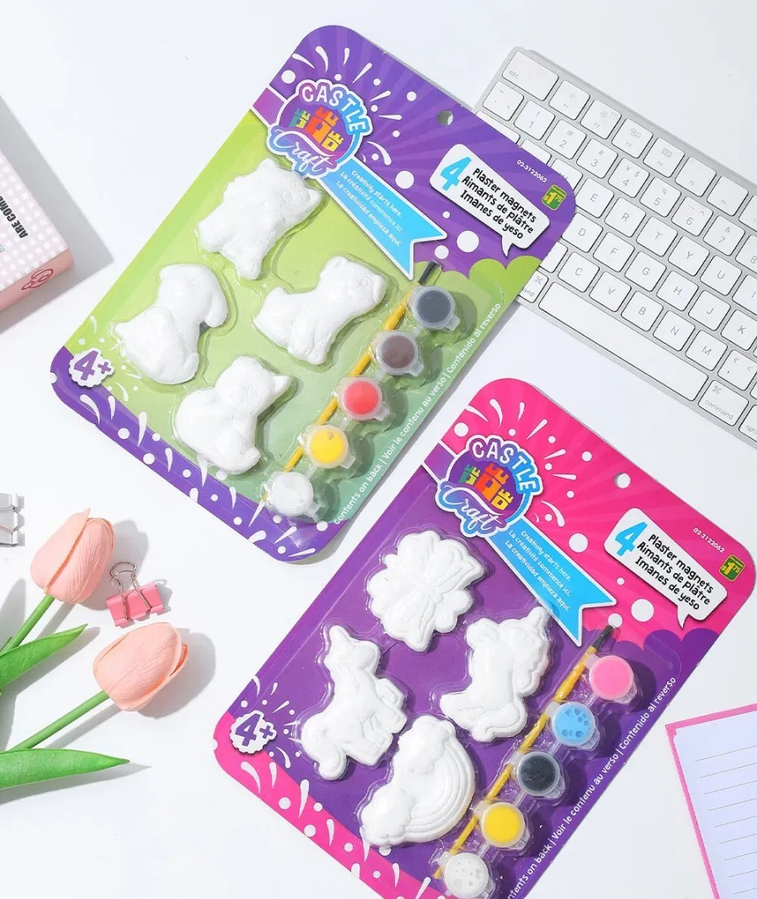 Kit de imanes de yeso para pintar y decorar, ideal para que los chicos desarrollen su imaginación mientras juegan.