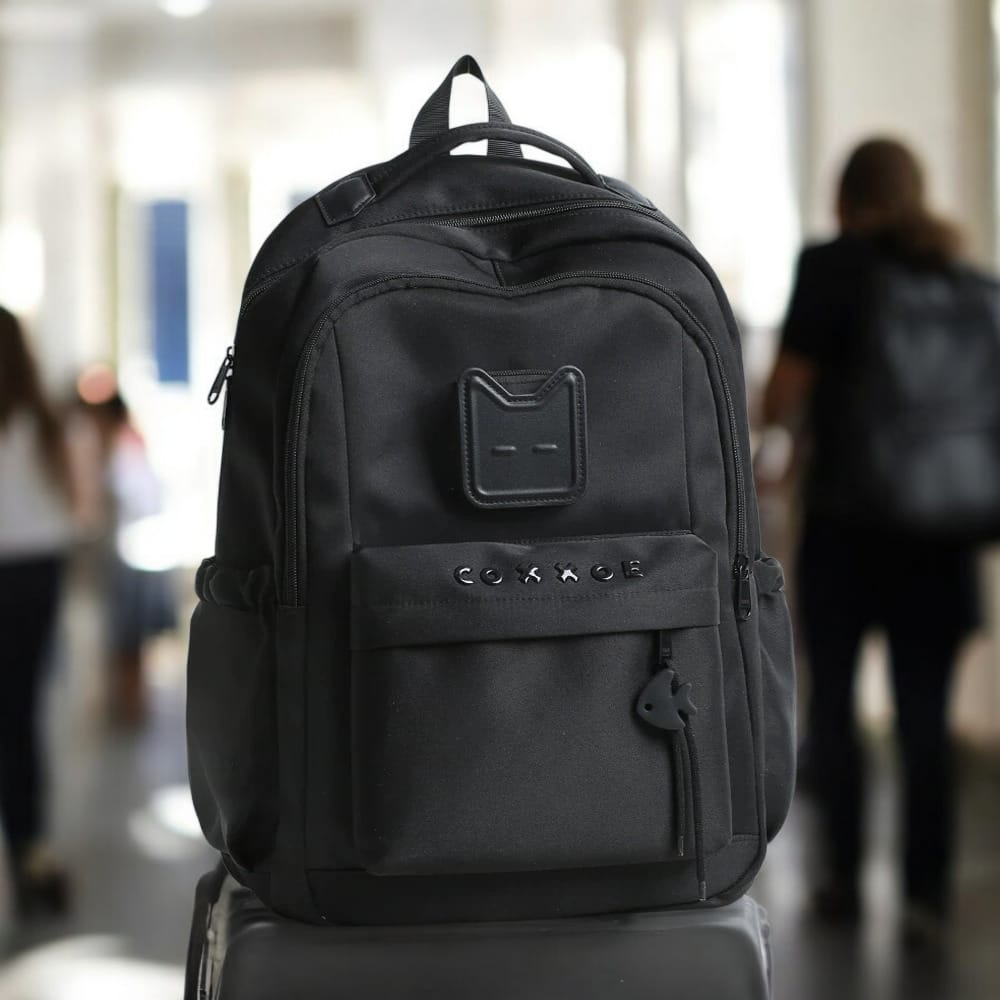 (Mochila escolar o casual. Dispone de un compartimiento principal con 1 bolsillos interno, 2 compartimientos frontales, 2 bolsillos laterales, un monedero y un bolsillo trasero).