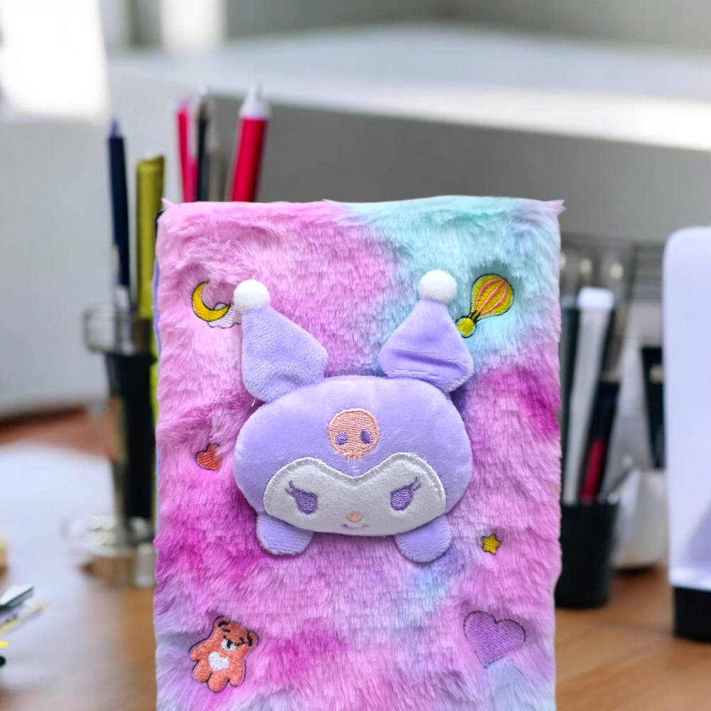 CUADERNO PELUCHE CON BORDADO KUROMI LILA