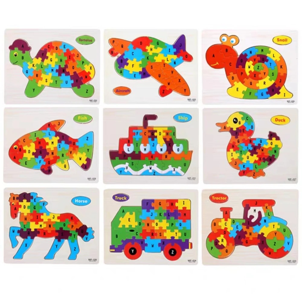ROMPECABEZA MADERA CON LETRAS Y FORMAS COLORES
