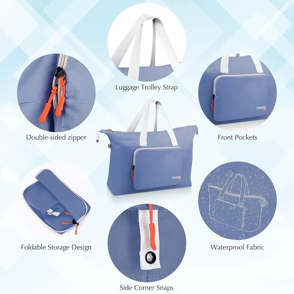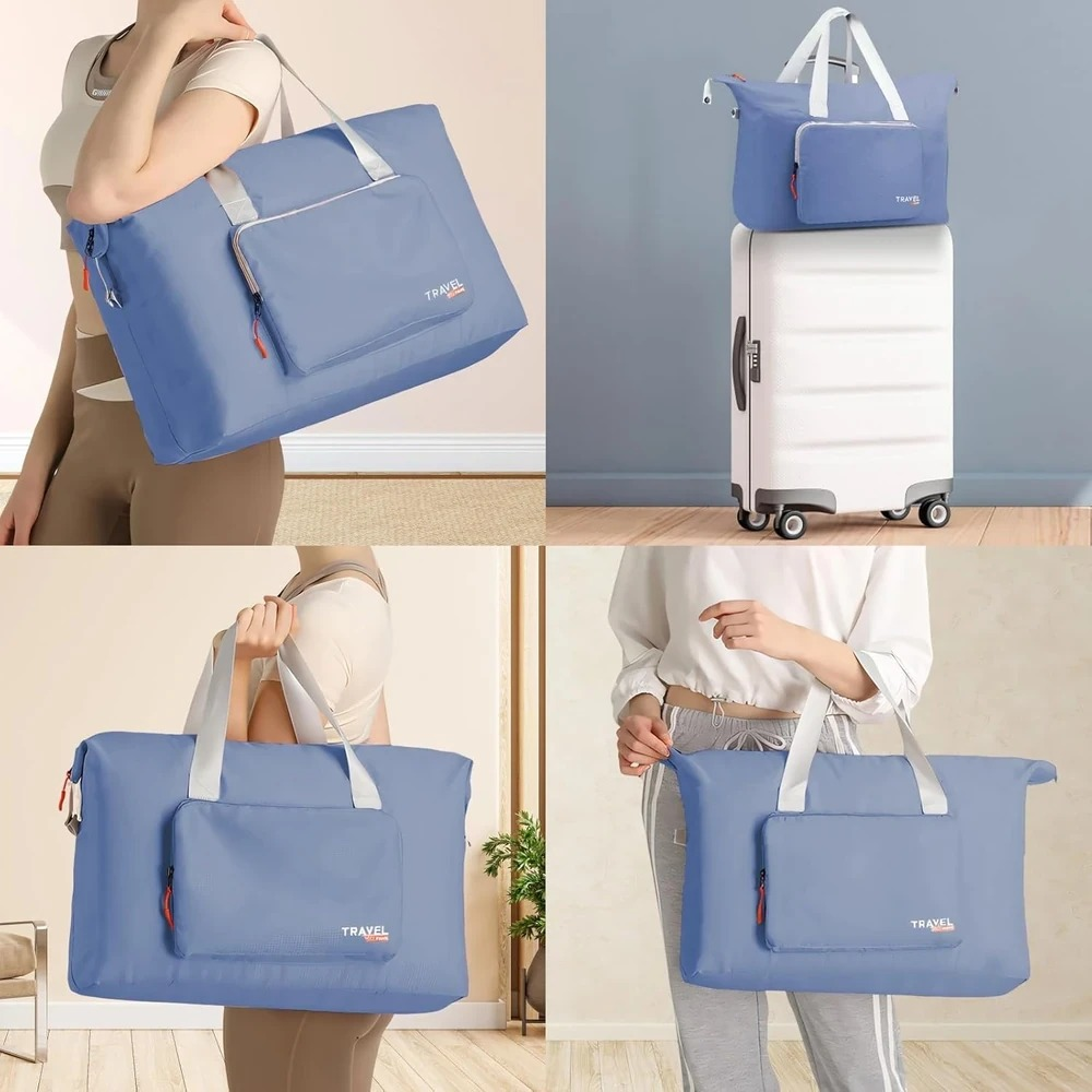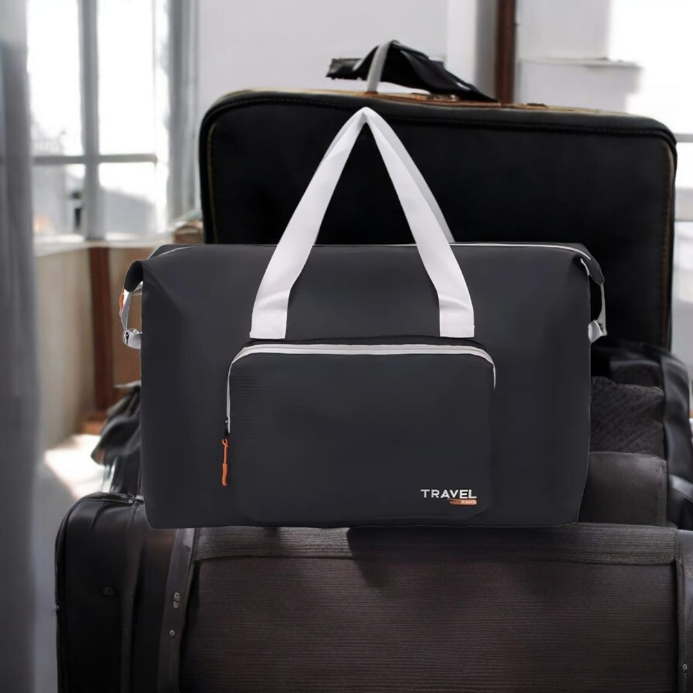 (Bolso de viaje plegable para llevar ropa, artículos personales y otros objetos necesarios para viajes cortos, escapadas de fin de semana o como equipaje de mano en vuelos. Puede ser utilizado para diversas actividades como ir al gimnasio, practicar deportes, o como una bolsa de uso diario. Tiene 1 bolsillo en la parte delantera, es muy fácil, cómodo y práctico tanto desplegar como guardarlo).