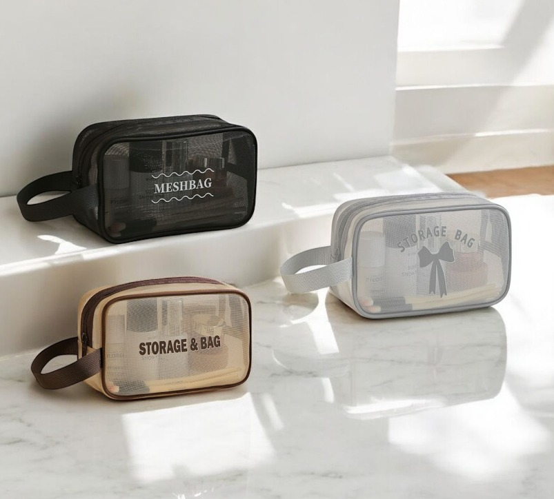 NECESER DE VIAJE TRANSPARENTE CON ASA CHICO