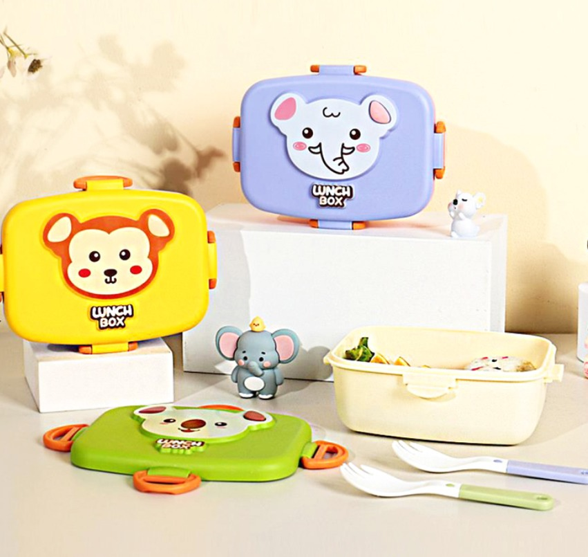 LUNCHERA RECTANGULAR CON CUBIERTOS ANIMAL FARM 750ML