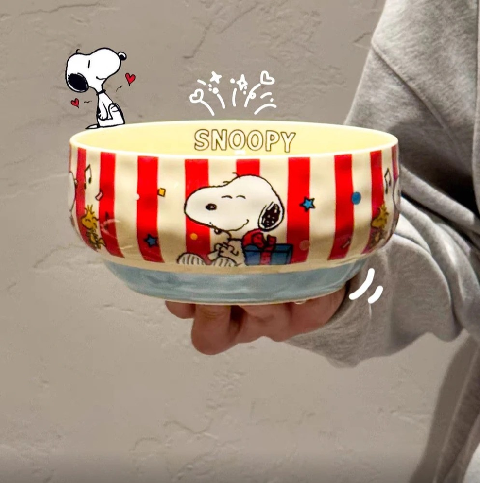 BOWL DE CERAMICA SNOOPY 15CM RAYAS ROJAS
