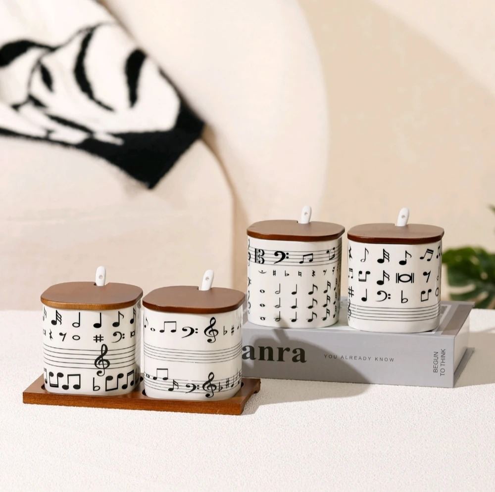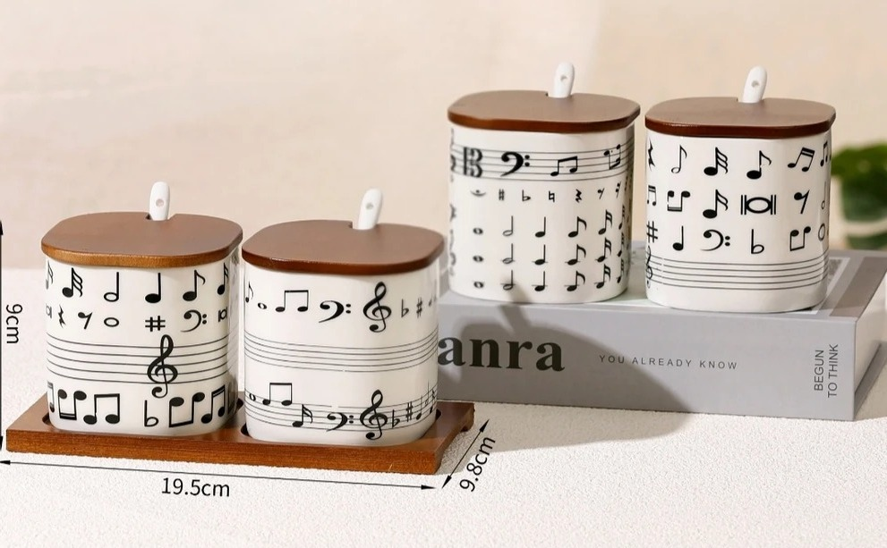 SET DE ESPECIEROS CERAMICA X 2 MUSIC CON TAPA BAMBU