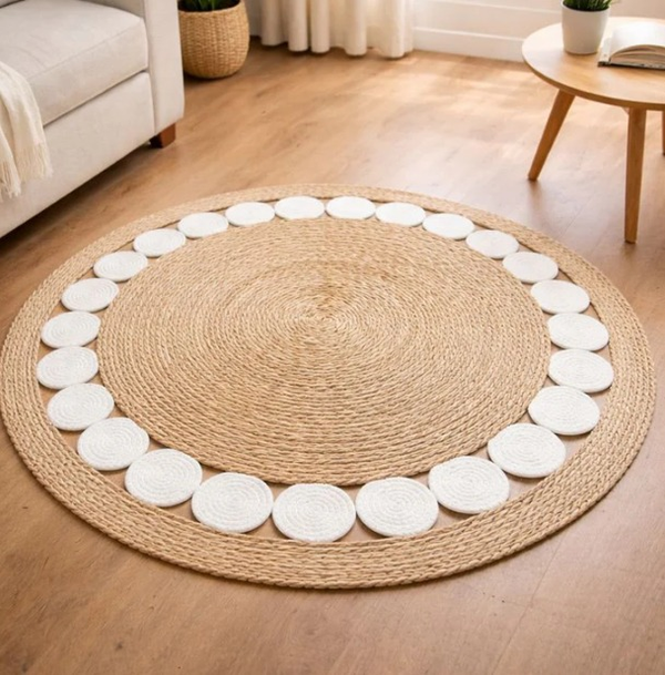 Alfombra de fibra natural. Ideal para living, dormitorio o espacios decorativos.