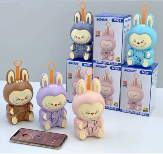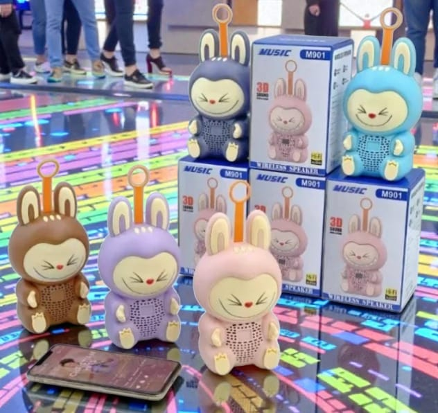 Minialtavoz inalámbrico Bluetooth tipo Labubu de 5 W Portátil, recargable Alcance de 10 mts USB/TF Radio FM Modo película/música
