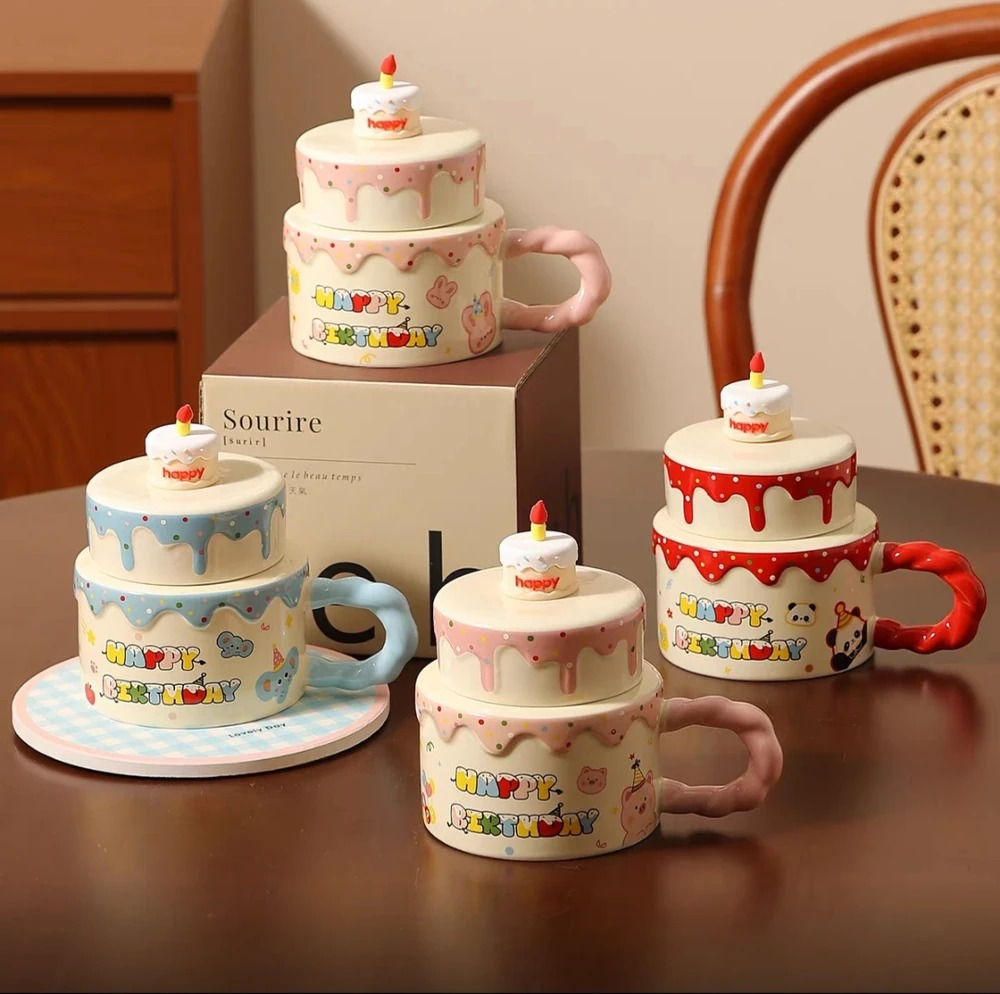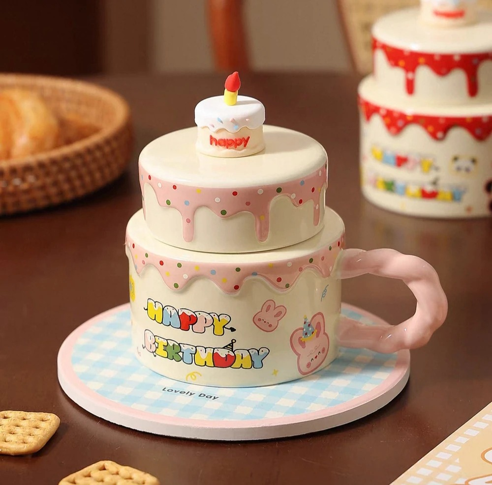 TAZA CERAMICA FORMA DE TORTA CON TAPA