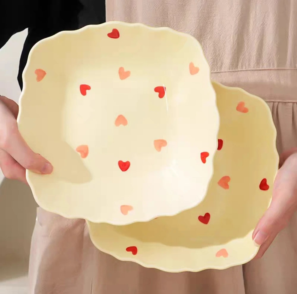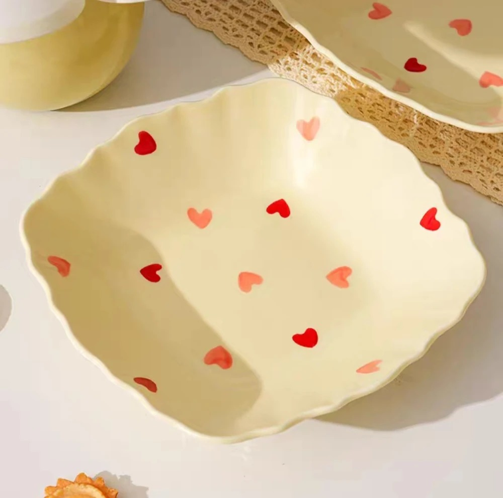 PLATO CUADRADO CORAZONES CERAMICA 20CM X U