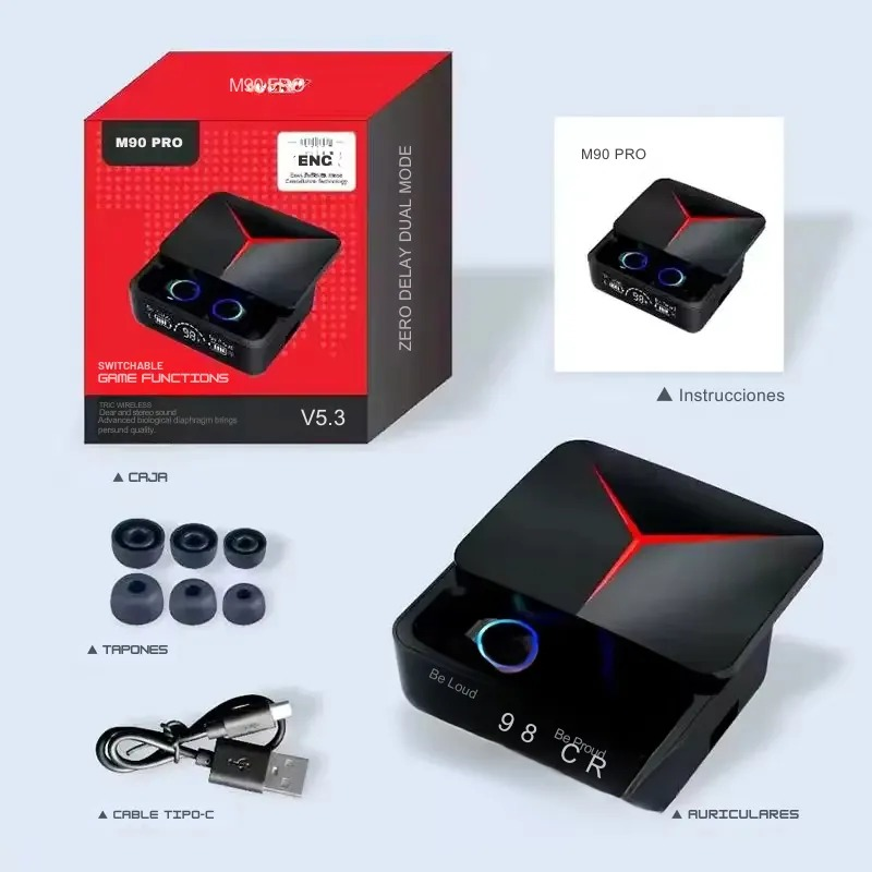 Diseñados para quienes buscan libertad total sin sacrificar calidad, los auriculares inalámbricos M90 Pro se adaptan perfectamente a tu oído con un diseño cómodo y ergonómico, brindándote un sonido envolvente, conexión estable y control táctil inteligente, todo en un formato discreto, ligero y listo para acompañarte a donde vayas, sin cables, sin enredos y sin límites.