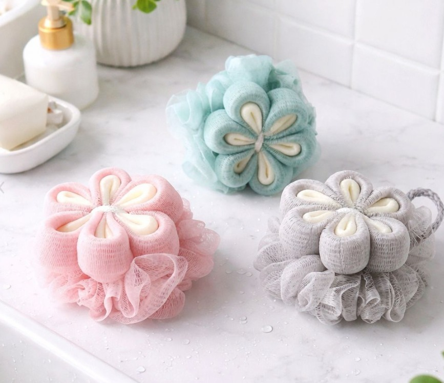 ESPONJA POMPON EXFOLIANTEFLOR DE CIRUELO